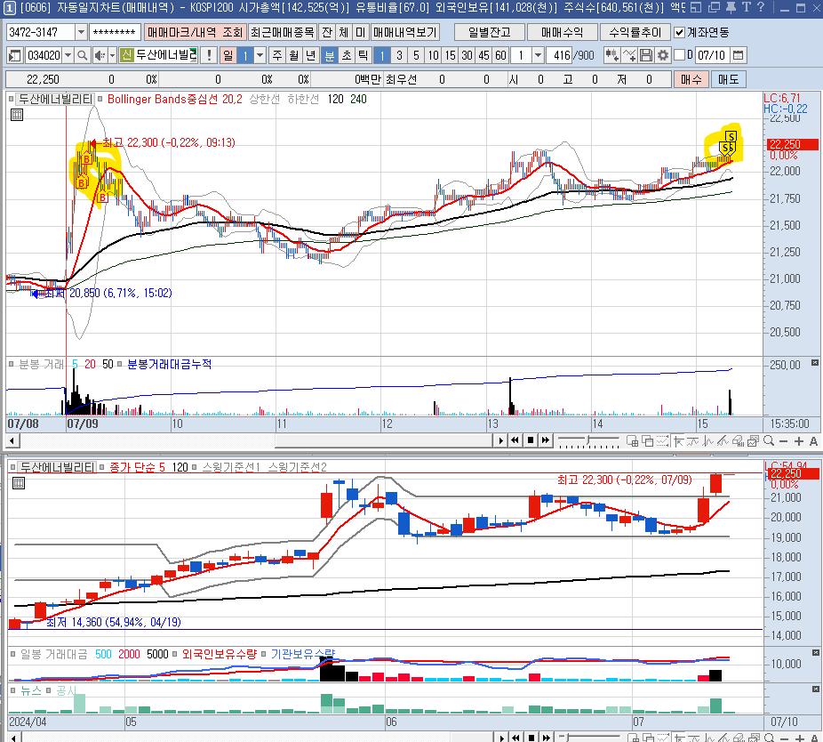 수급 : 신한에서 계속 매도를 하면서 매도를 고민하였지만, 오후장에는 바뀔거라고 생각하고, 기다렸다.