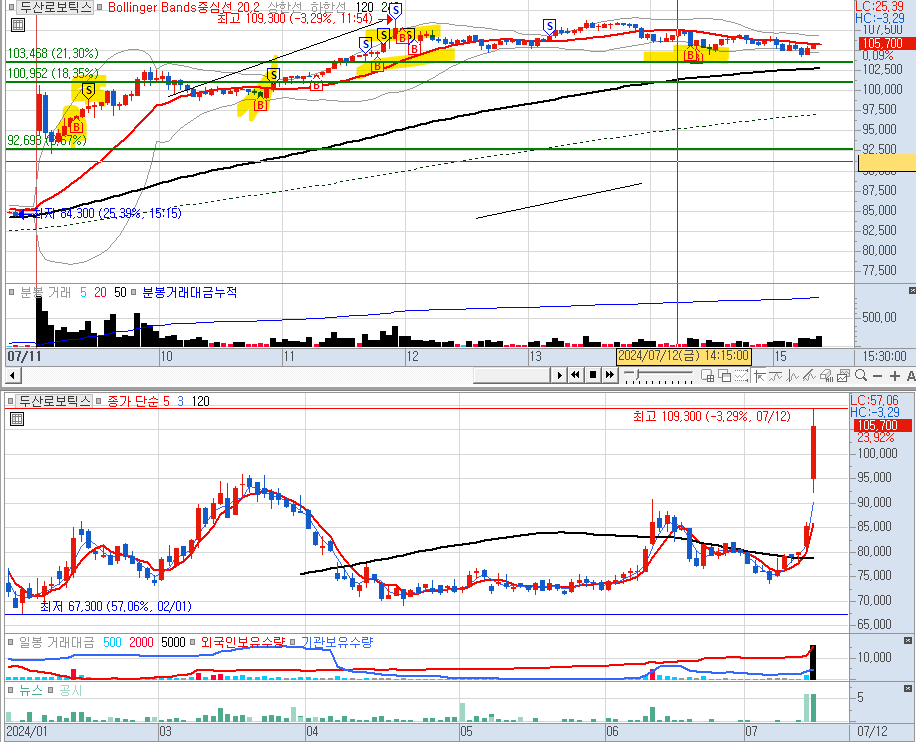 두산로보틱스의 두산밥켓 인수를 통해 급등주 발생하여 매수 진행.