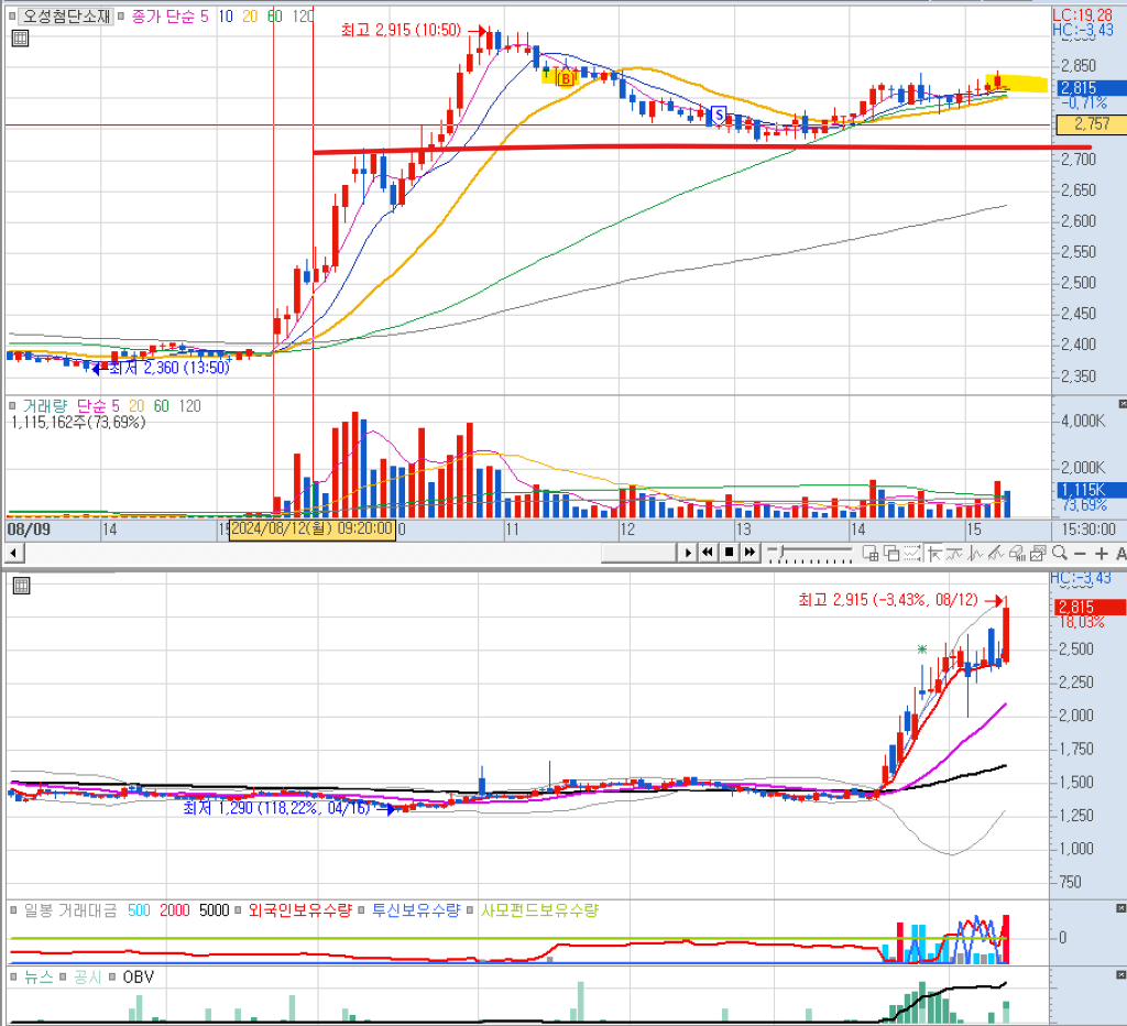 아... 근데 너무 빨리 팔아버렸다. 4.5% 시간외에서 매수하였고, 이후에 계속 올랐는데, 프로그램 매수와 외국인 매수가 지속적으로 들어왔기 때문에 매도를 하지 말았어야 하는데, 안타깝게 되었다.