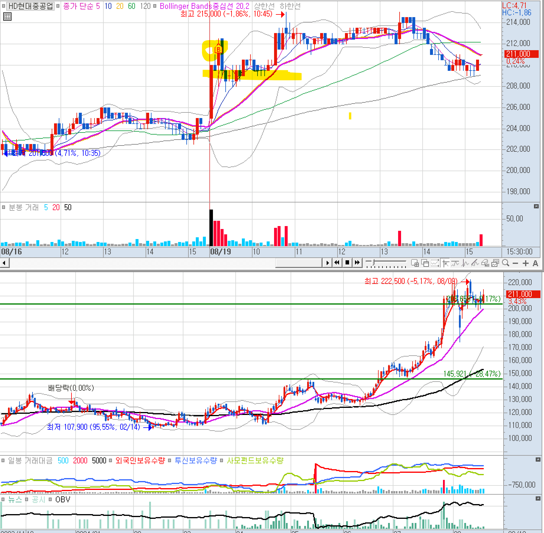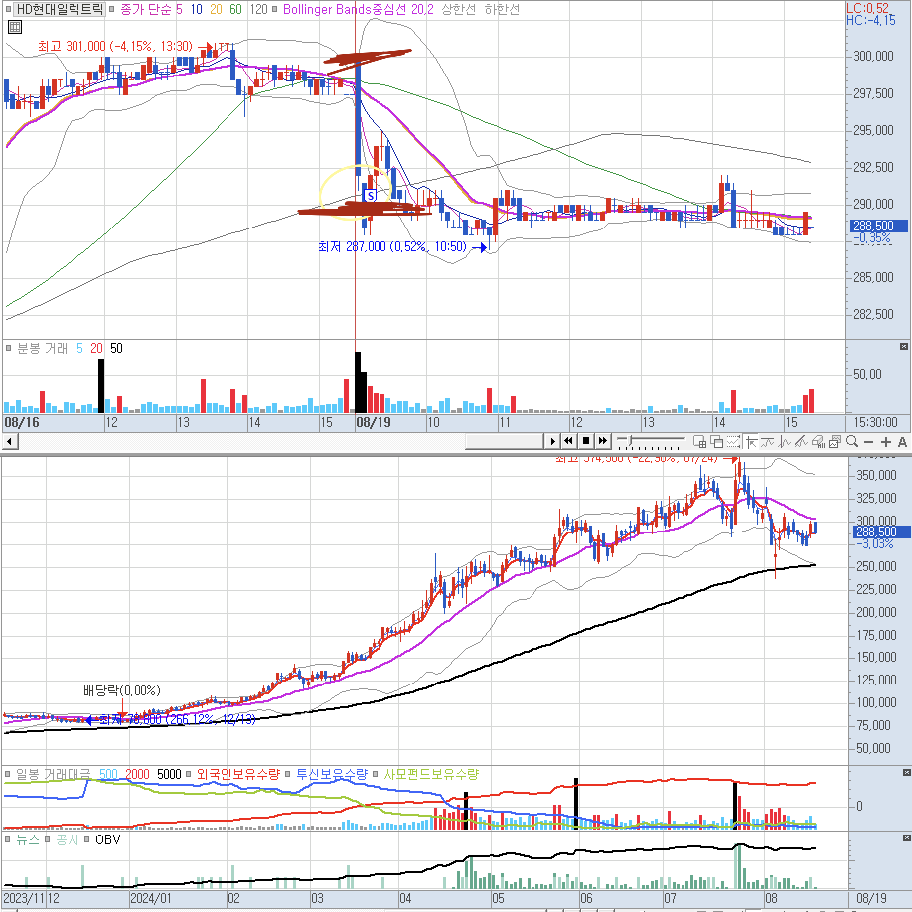--> 가장 아쉽다. 눌림 -1.6%을 줬는데 못갔다. 현대일렉트릭에서 손해를 보고 정말 짜증나서 그런가 보다.