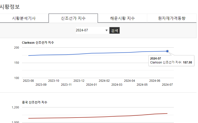 - 아침부리핑에서 좀 지난 다음에 좋아질 거라는 매트와 함께 오전장이 무너진 사례. 하지만, 돈깡은 하락할 때마다 사 모으겠다라고 했다. 신조선가 상승률이 7월에 약간 떨어졌다.