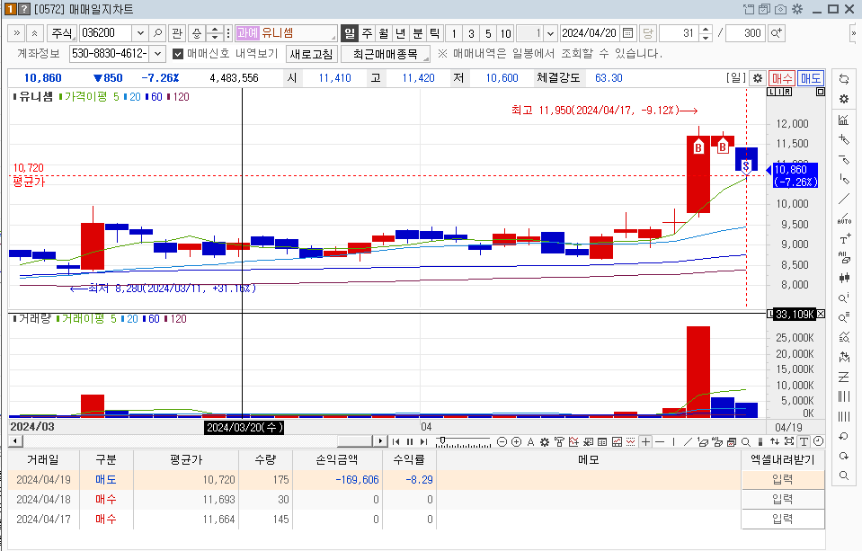 유니셈 (-8.5% ) 손절