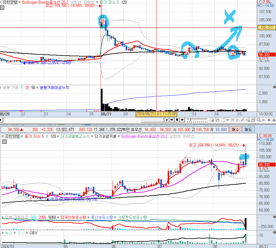 오늘의 가장 폐착, 유한양행. - 이정도 뉴스라면 뉴스매매로 하락하더라도, 금방 올라올 것이다.