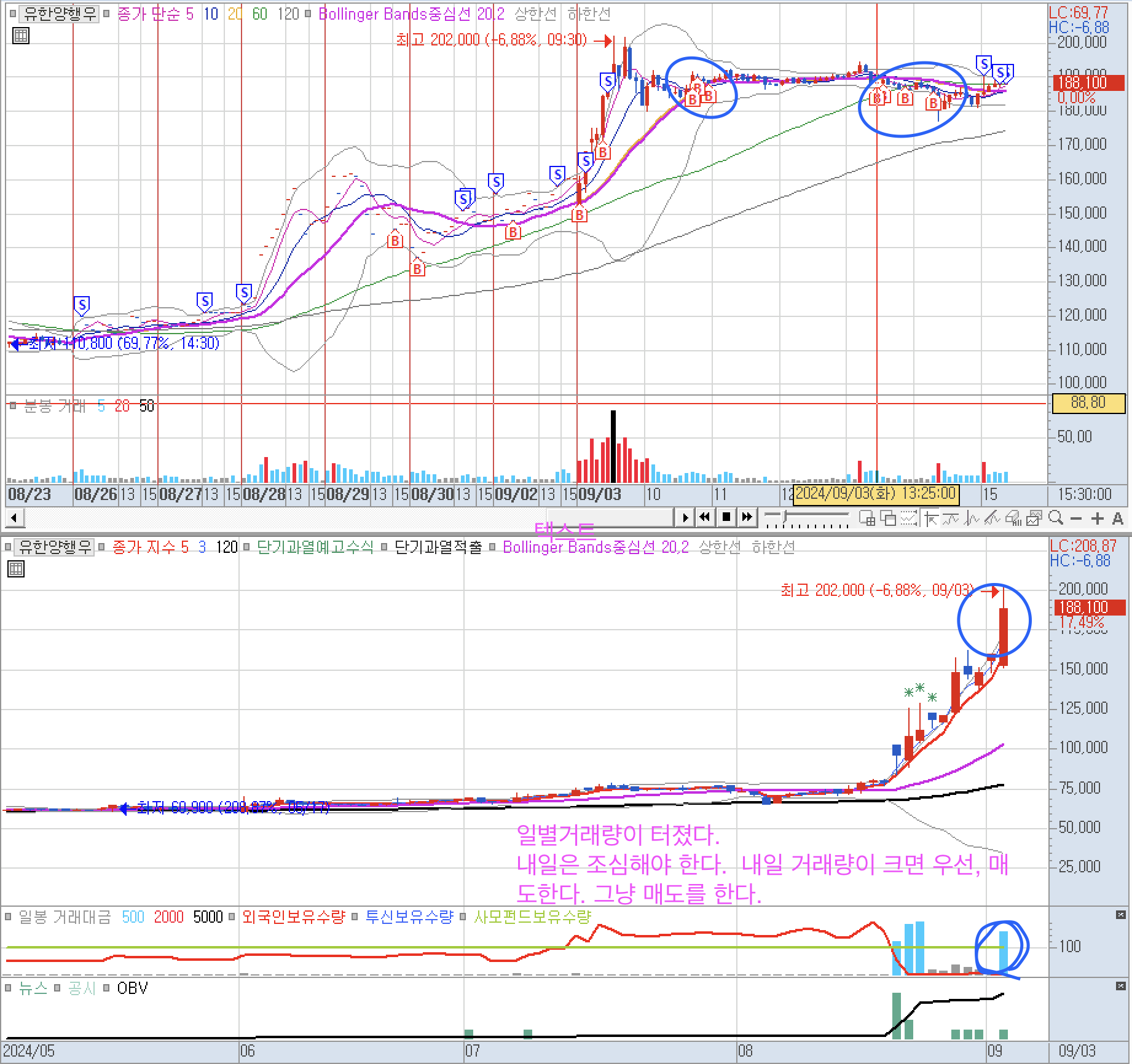 일거래량이 터졌다. 내일 이 거래량보다 더 크게 거래가 터지면, 우선, 전체 매도한다. (오전 9시 20분까지 확인~~)