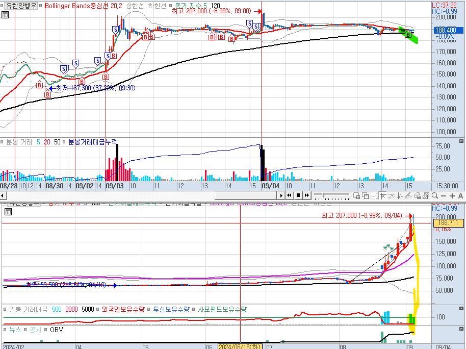 --> 매수하지 않았다. 그냥 지켜만 보았다. 하지만, 오늘 투신, 사모에서 매수했다.