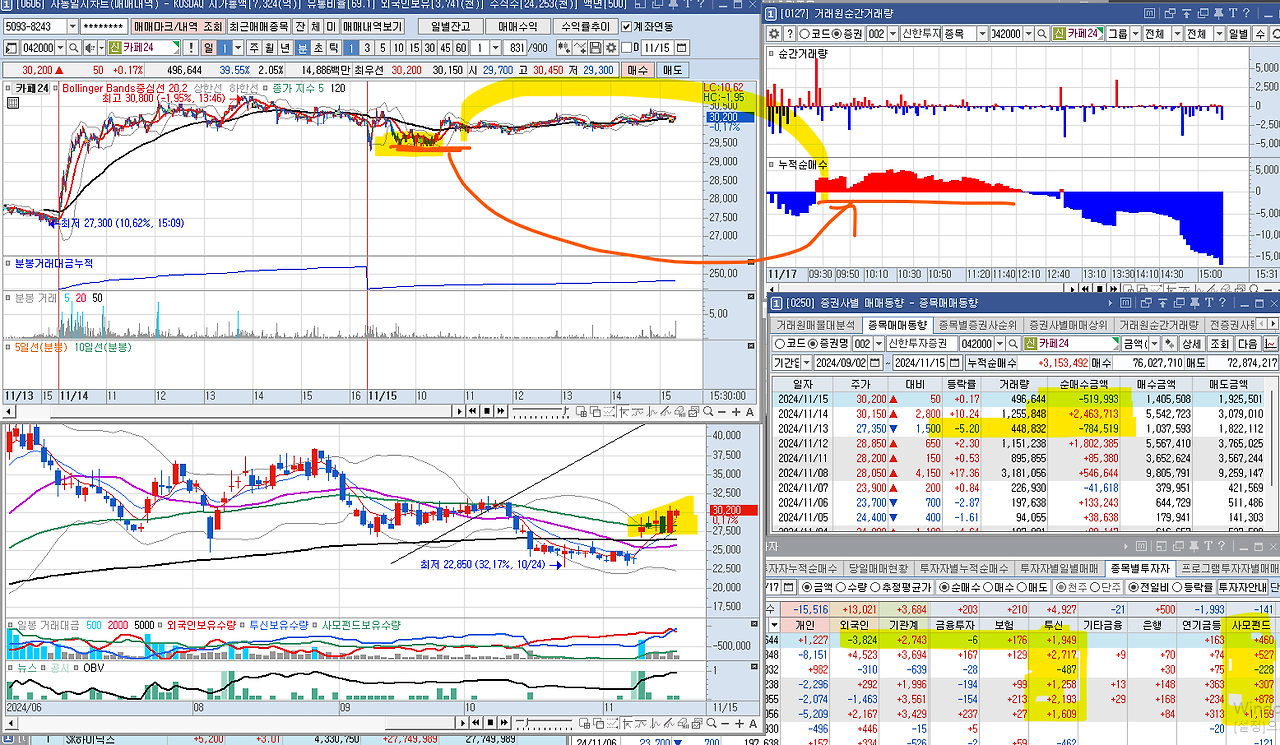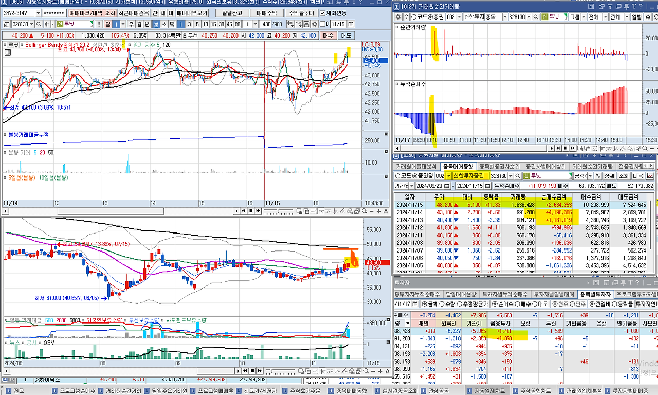 갑자기 신한에서 매수를 진행해서 매수를 진행함. 하지만, 수급이 쌔진 안않다.