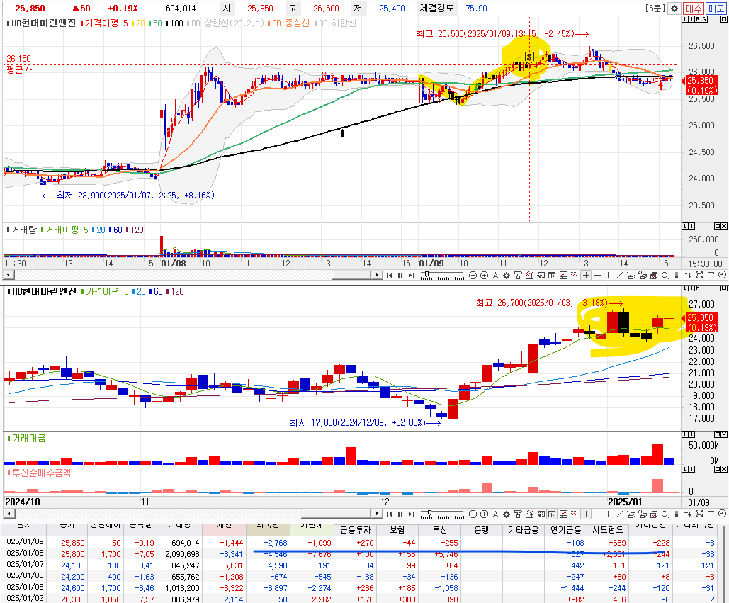1. 전날 장대양봉 상승에 따라 1주 매수 후 추세 점검 + 조선주상승에 따른 엔진 관련주 상승