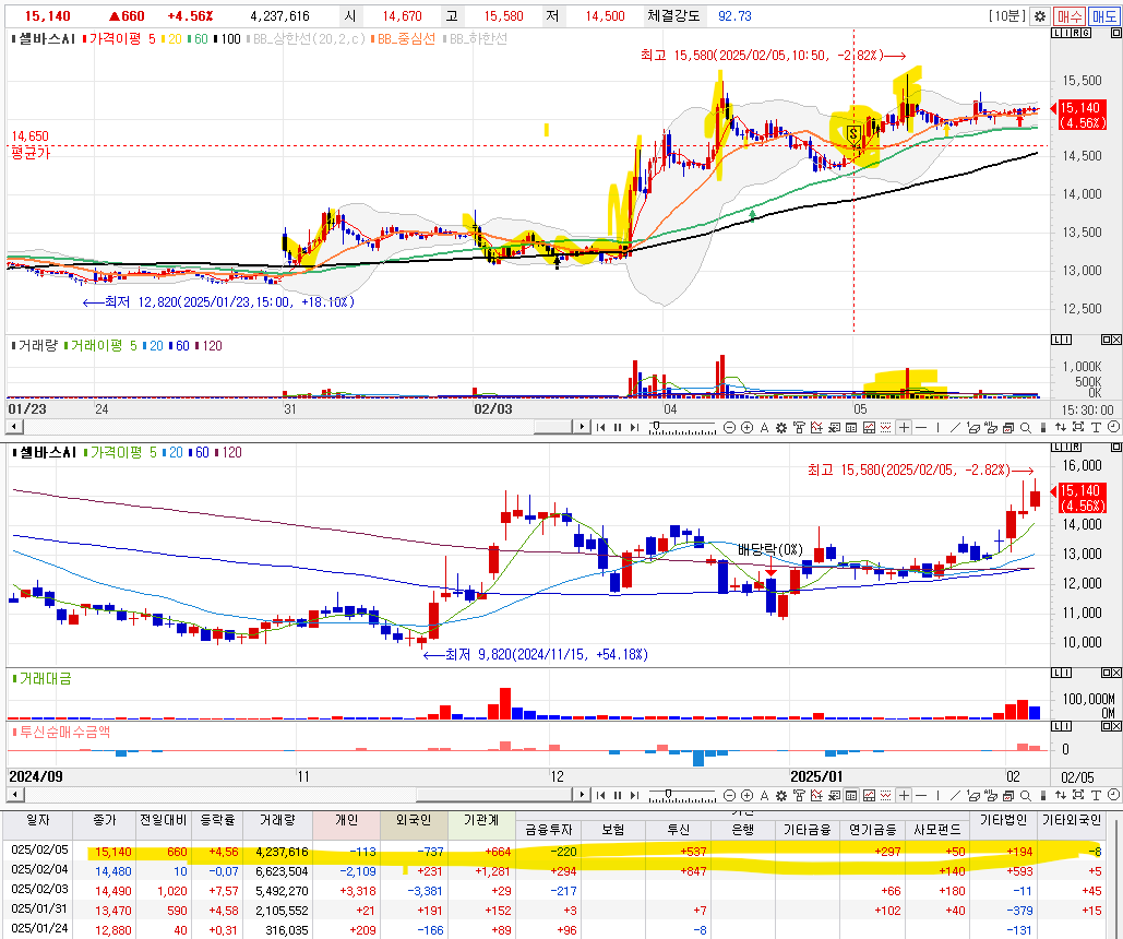 1. 외국인과 투신의 수급이 좋아서 테스트 매수 진행