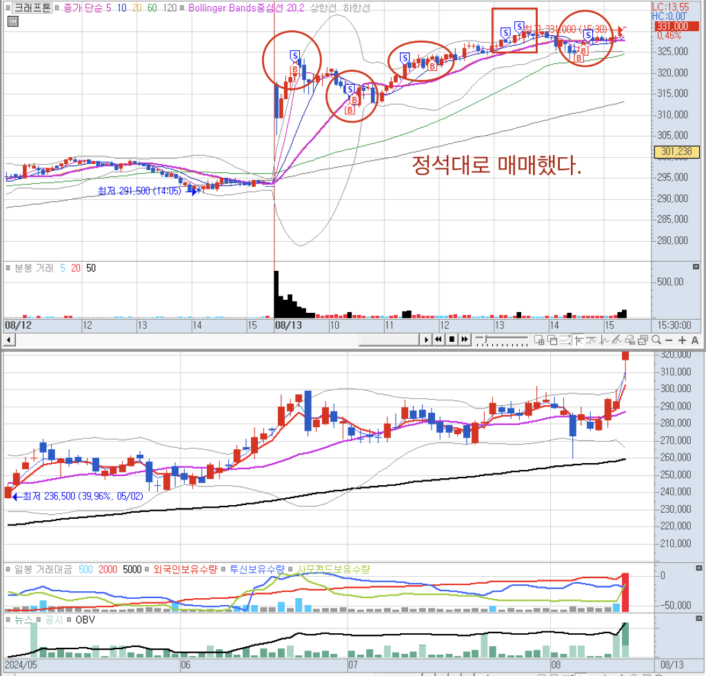 오전에 크레프톤이 상승 출발하였으나 밀려서 본전에 팔았는데, 그 이후에 상승하면서 나름 잘 버텼다.