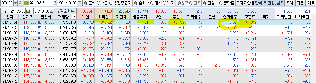 수급 : 기관이 어마무시하게 매수 진행중. (금융투자, 투신, 연기금)